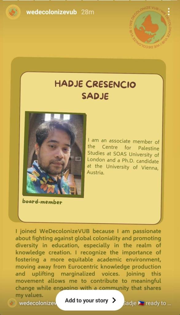 ● Board Member, 2025-2026 WeDecolonizeVUB Universitair Centrum voor Ontwikkelingssamenwerking Karel Van Miert Gebouw