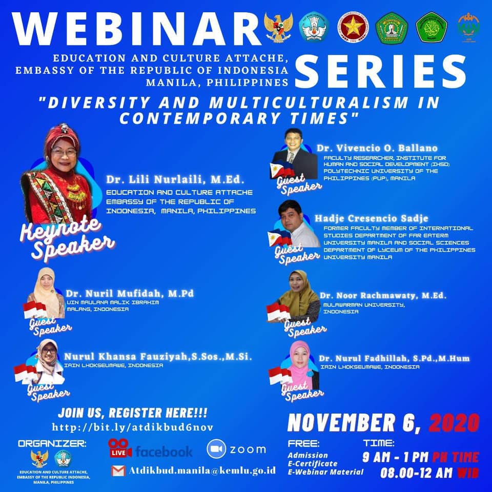 “Diversity and Multiculturalism in Contemporary Times,” (6, November 2020) Webinar Series, Education and Cultural Attaché: