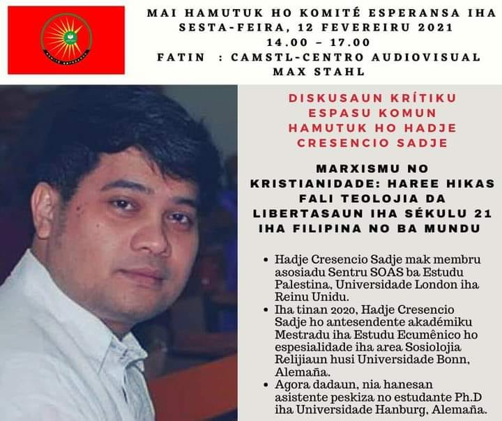 ● Speaker “Marxism and Christianity: Revisiting Liberation Theology in the 21st Century in the Philippines and Beyond” (11, February 2021) Kometé Esperansa, Timor Leste