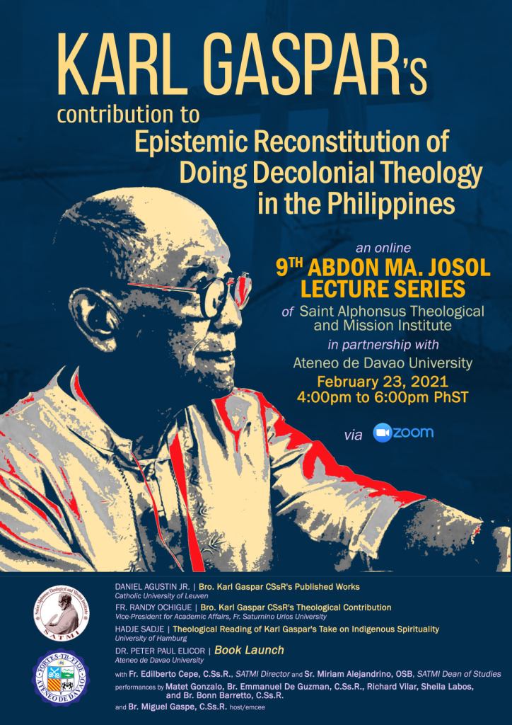 ● Speaker “Karl Gaspar’s Contribution to Epistemic Reconstitution of Doing Theology in the Philippines,” (23, February 2021) St. Alphonsus Theological and Mission Institute & Ateneo De Davao University, Philippines
