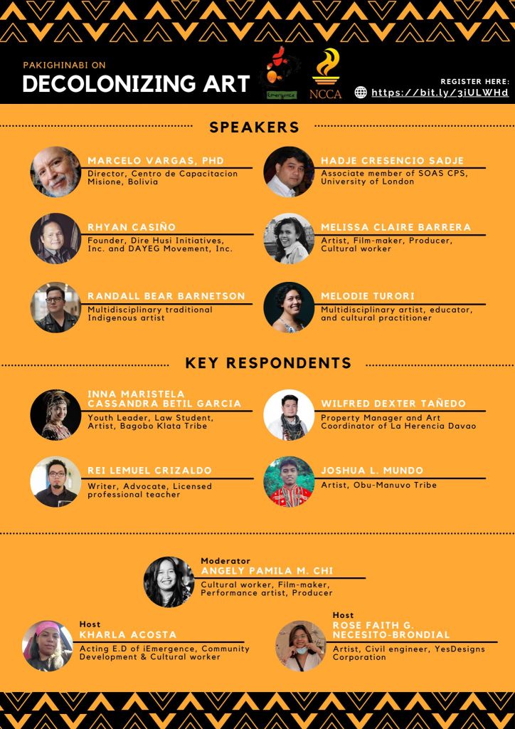 ● Speaker “Decolonizing Art” (11-12, November 2021) IEmergence Inc. Davao City, Philippines