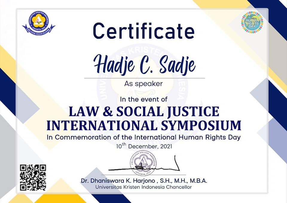 ● Speaker “Decolonizing Social Justice Movement,” (10, December 2021) Law and Social Justice Symposium, Universitas Kristen Indonesia.