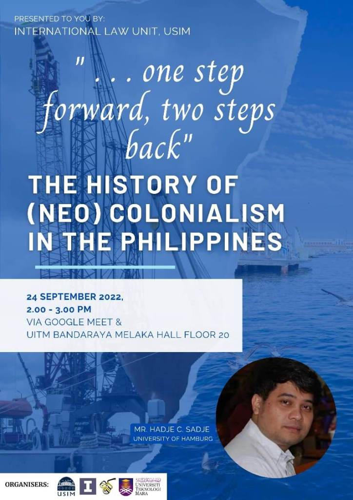● Speaker “… one step forward, two steps back: The History of (Neo)Colonialism in the Philippines,” (24 September 2022) Universiti Sains Islam Malaysia & Universiti Teknologi MARA (UiTM) Shah Alam, Malaysia