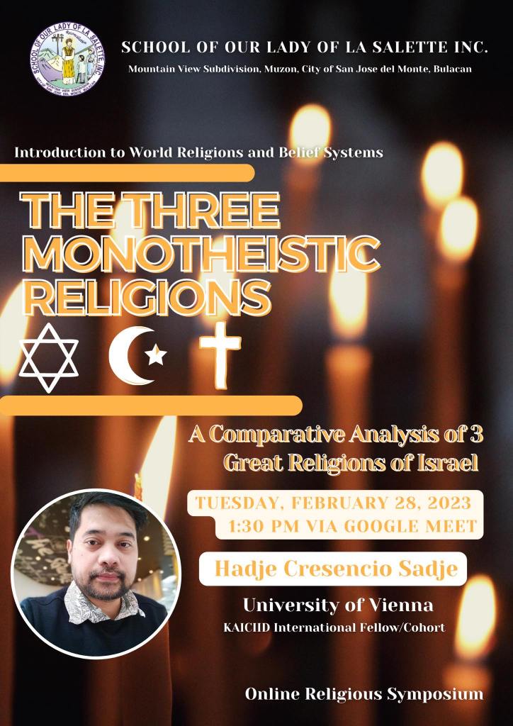 ● Speaker “Three Monotheistic Religions,” (28, February 2023) School of Our Lady La Salette, Inc. San Jose del Monte, Bulacan, Philippines