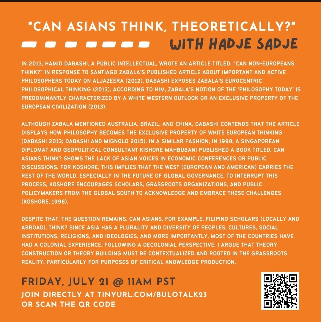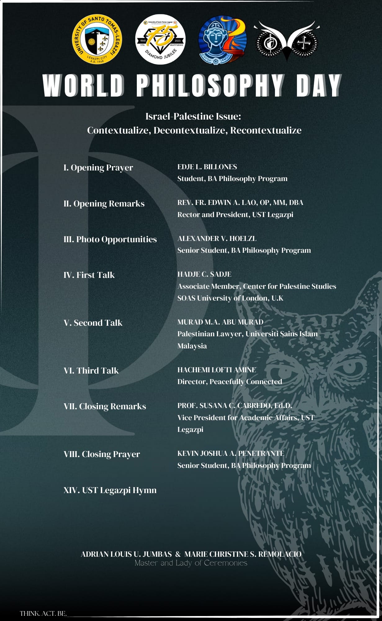 ● Speaker “Can Asians think, Philosophically?” (21, November 2021) In celebration of World Philosophy Day 2021, The University of Sto. Tomas Legazpi organized a public forum titled, ‘Challenges in the 21st Century Philosophy,’ Philippines