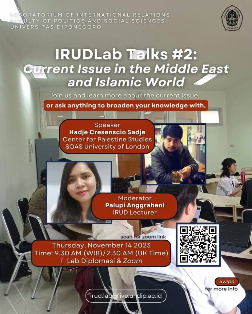 ● Speaker “Understanding the Israel and Palestine Conflict,” organized by Department of International Relations/Faculty of Politics and Social Sciences, Universitas Diponegoro Indonesia