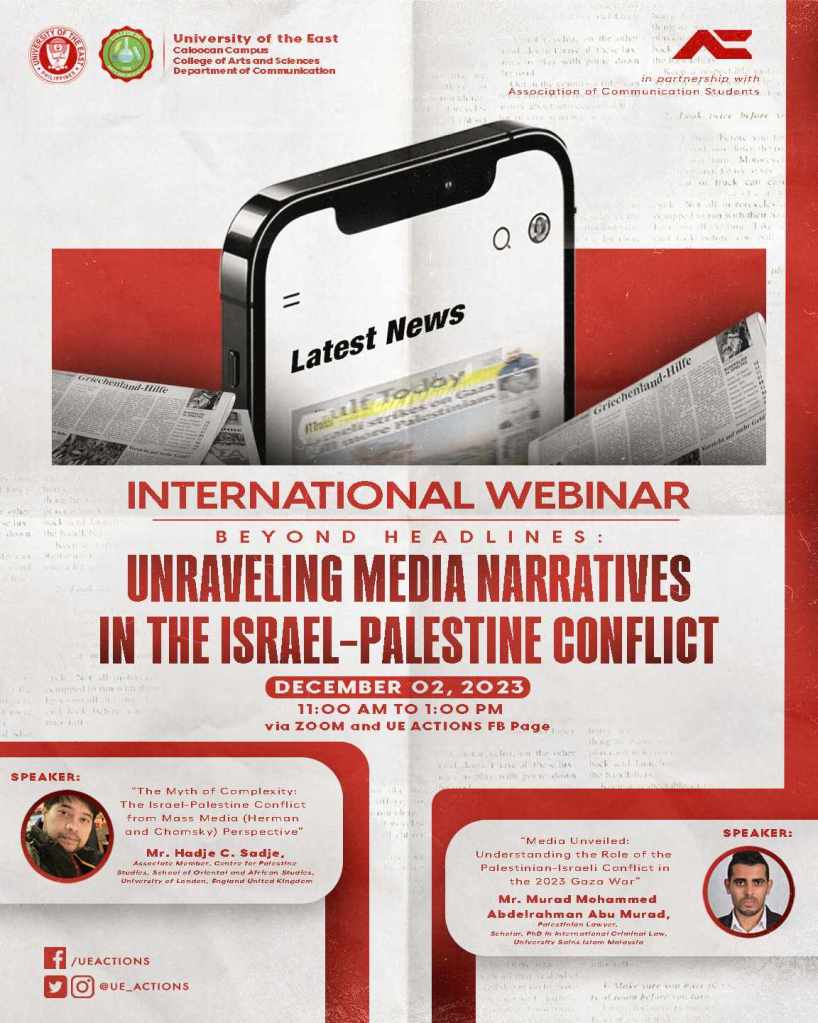 ● Speaker ‘The Myth of Complexity: The Israel-Palestine “Conflict” from Mass Media (Herman and Chomsky) Perspective,’ hosted by the Department of Communication at the University of the East Caloocan, Philippines