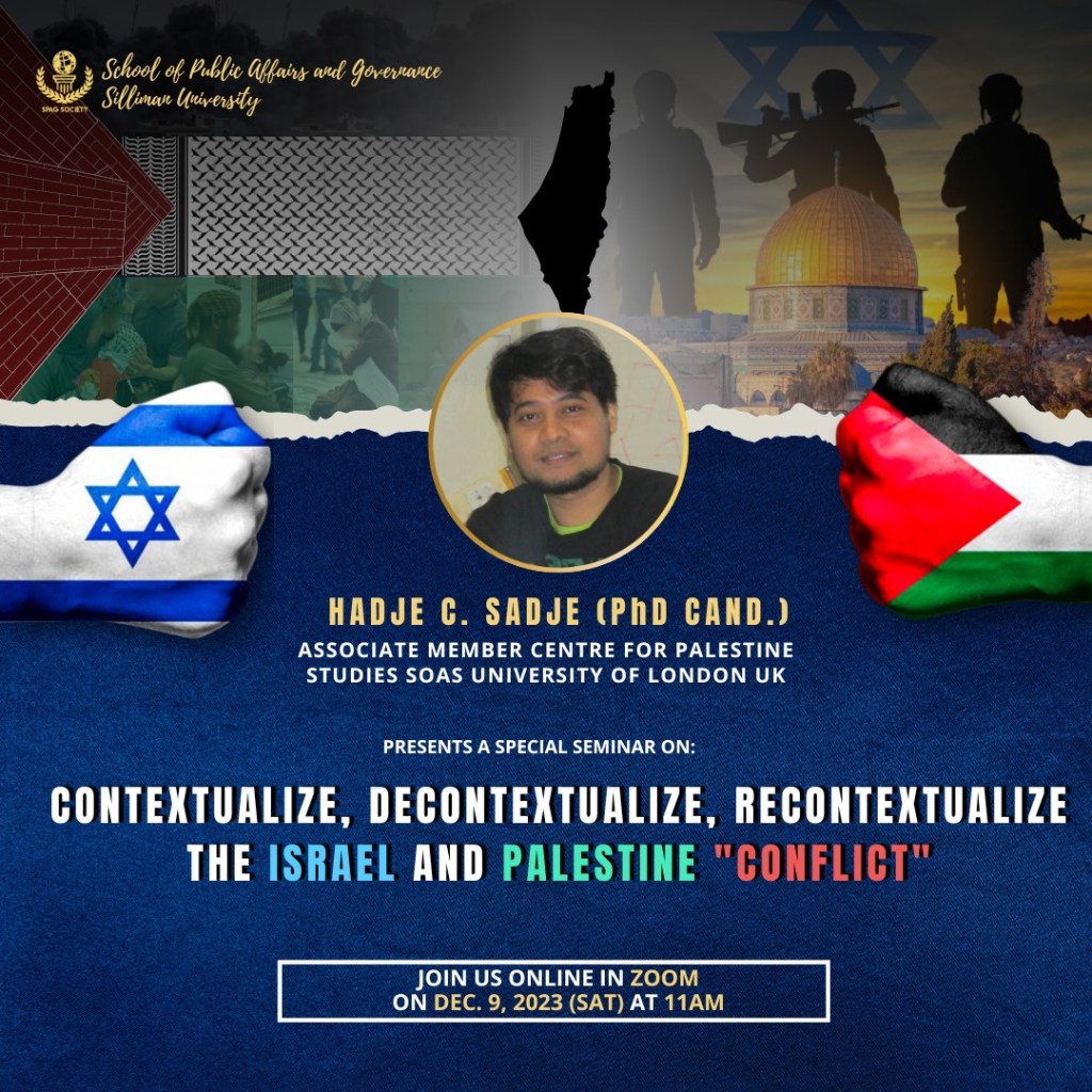 ● Speaker “Occupier and Occupied: Contextualize, Decontextualize, Recontextualize the Israel and Palestine Conflict,” hosted by the School of Public Affairs and Governance at the Silliman University, Philippines