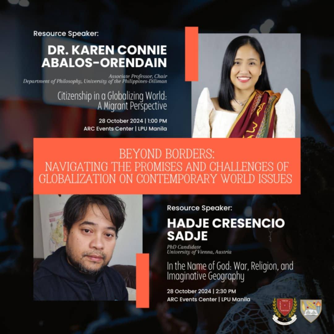 ● Speaker “In the Name of God: War, Religion, and Imaginative Geography,” hosted by Lyceum of the Philippines University