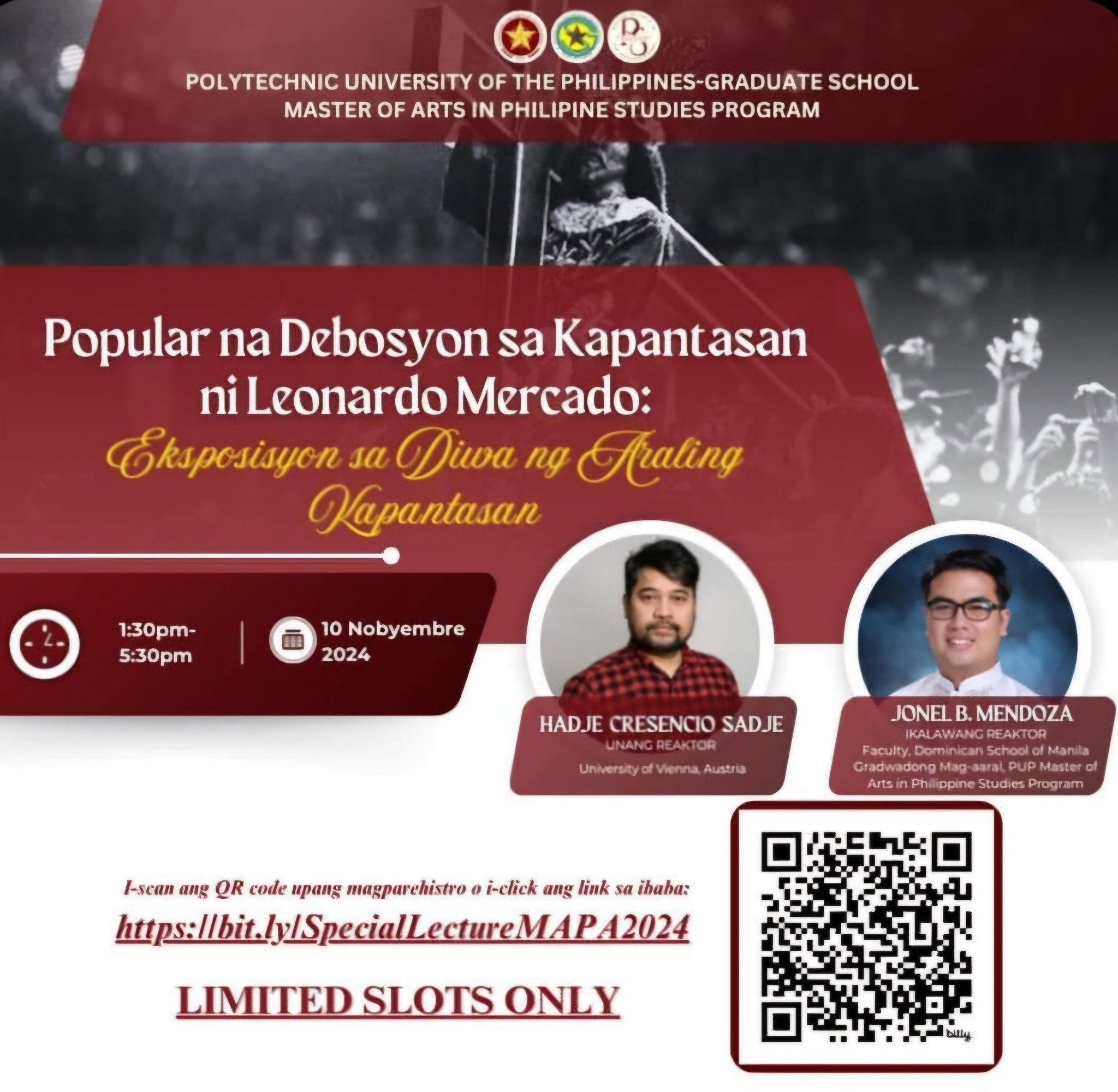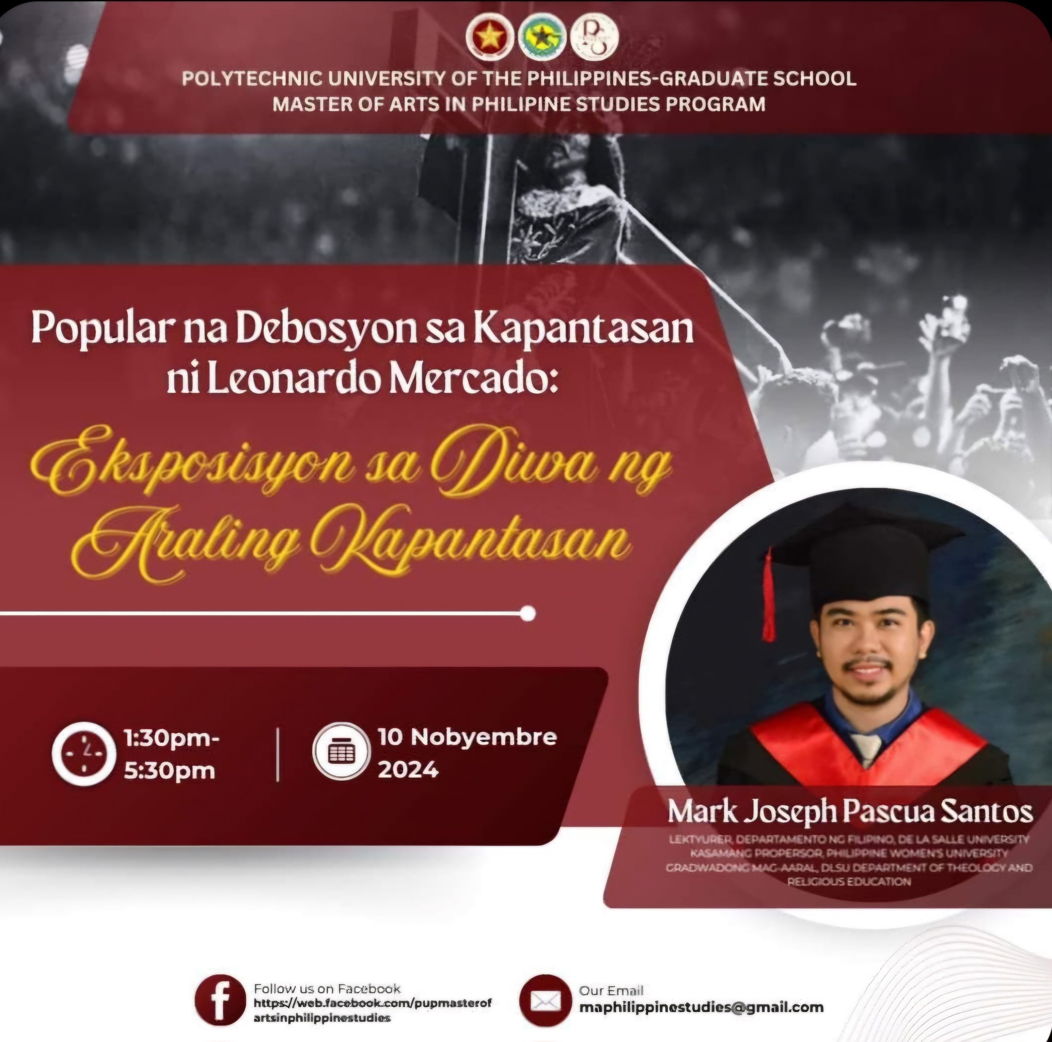 ● Reactor “Popular na Debosyon sa Kapantasan ni Leonardo Mercado: Eksposisyon sa Diwa ng Araling Kapantasan,” hosted by Master of Arts in Philippine Studies Program, Polytechnic University of the Philippines